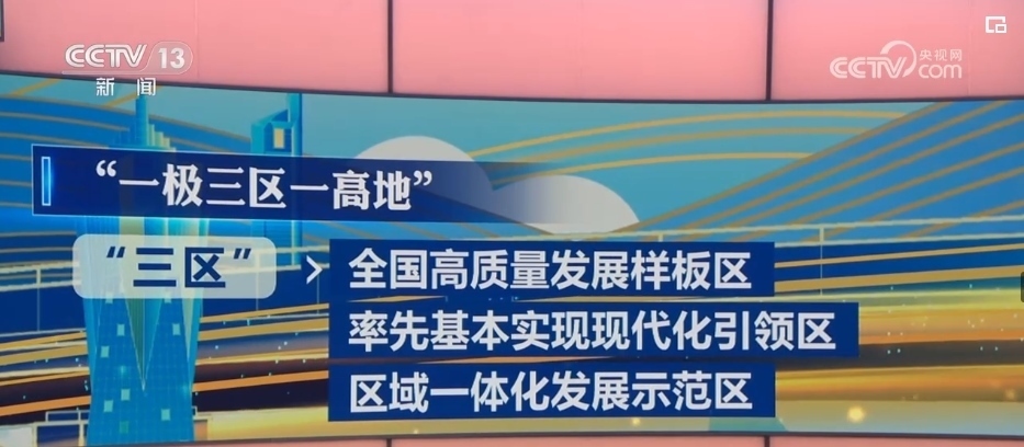 其中,“一極”就是全國發(fā)展強勁活躍增長極,“三區(qū)”指的是全國高質量發(fā)展樣板區(qū)、率先基本實現(xiàn)現(xiàn)代化引領區(qū)、區(qū)域一體化發(fā)展示范區(qū),而“一高地”則是指新時代改革開放新高地。