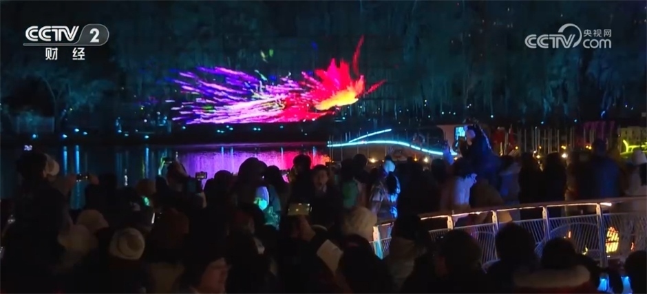總臺(tái)記者 魏雨彤:我現(xiàn)在所在的商圈正是燈光節(jié)的核心區(qū)域,柔和的燈光線條點(diǎn)亮樓宇建筑的天際線,一路繁華一路景,各色燈光交相輝映,讓夜晚變得多姿多彩。