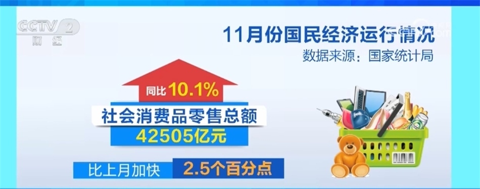 從消費(fèi)看,出行類的商品銷售改善,服務(wù)消費(fèi)潛力繼續(xù)釋放,市場(chǎng)銷售增勢(shì)良好。11月份社會(huì)消費(fèi)品零售總額同比增長10.1%,比上月加快2.5個(gè)百分點(diǎn),其中限額以上單位汽車類商品零售額增長14.7%,帶動(dòng)作用明顯。