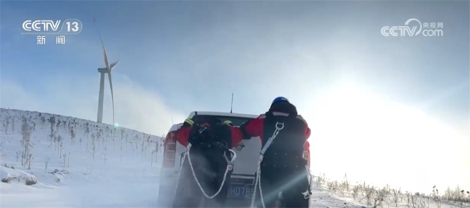 在河北張家口沽源縣,最高氣溫只有零下17攝氏度。華電冀北新能源馳盛風(fēng)電場的運維員工,冒著寒風(fēng)檢查線路覆冰情況,發(fā)現(xiàn)并消除線路覆冰101公里。