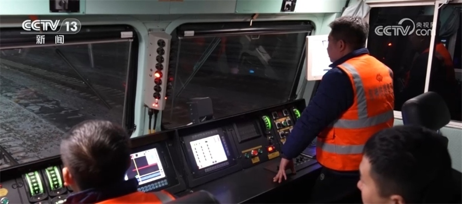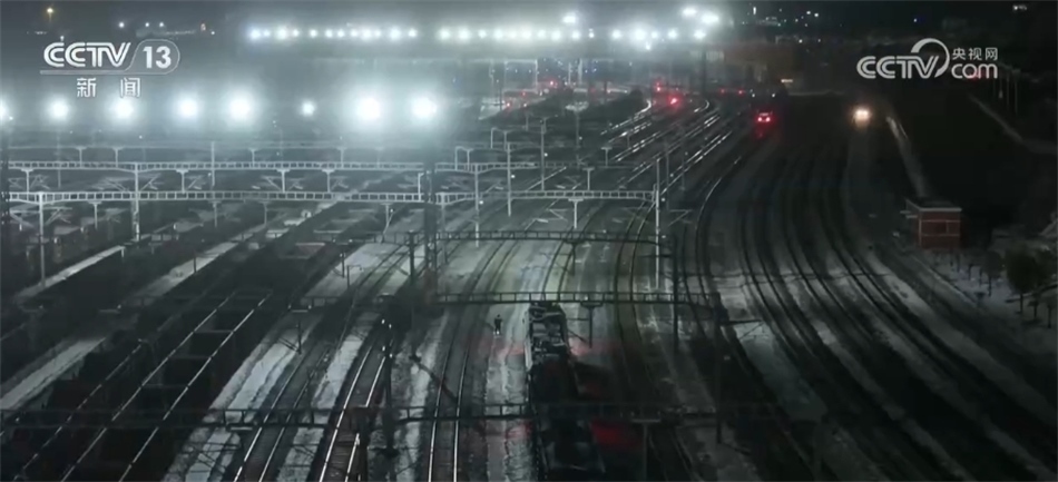 總臺央視記者 張叢婧:我現(xiàn)在是在一列滿載著將近一萬噸煤炭的貨運火車上,正在駛往黃驊港方向。這列車從神東礦區(qū)裝滿煤之后,一路往東,現(xiàn)在到達(dá)了它途中的第一個編組站,在這里會進行更換車頭的工作,因為這往后的路會更加崎嶇難走,我們可以看到現(xiàn)在路上是有積雪,所以需要在這換一個更大功率的車頭,才能夠帶得動它身后這一百多節(jié)車廂去走這段更艱難的路?,F(xiàn)在隨著這個車緩緩進站,馬上就要去進行編組任務(wù)。