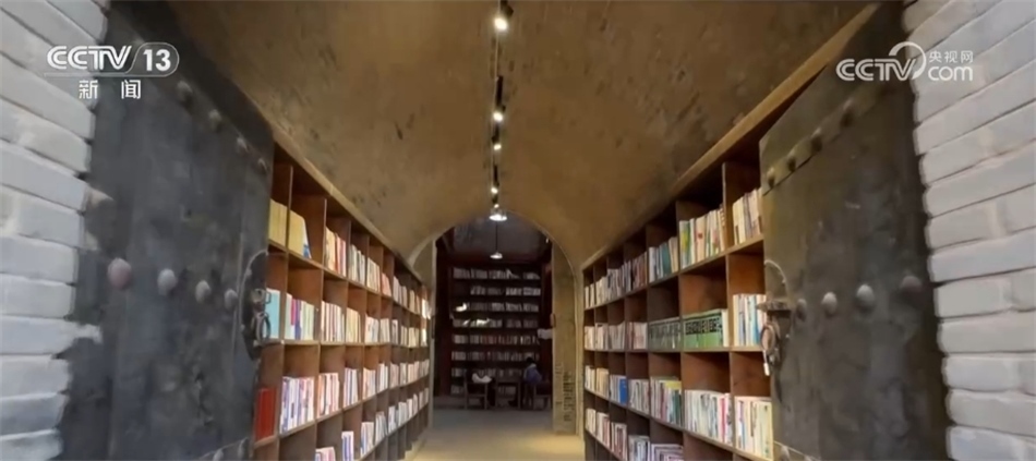 您現(xiàn)在看到的是河南孟州市莫溝村的老苗窯洞書館。2016年,村里將一處廢棄的窯洞改造建成了書館。古樸與現(xiàn)代交織的書館占地4000多平方米,藏書5萬多冊(cè)。自2016年建成以來,書館全年開放,每到節(jié)假日就幾乎坐滿了人。如今,書館已經(jīng)成了村民的精神家園。
