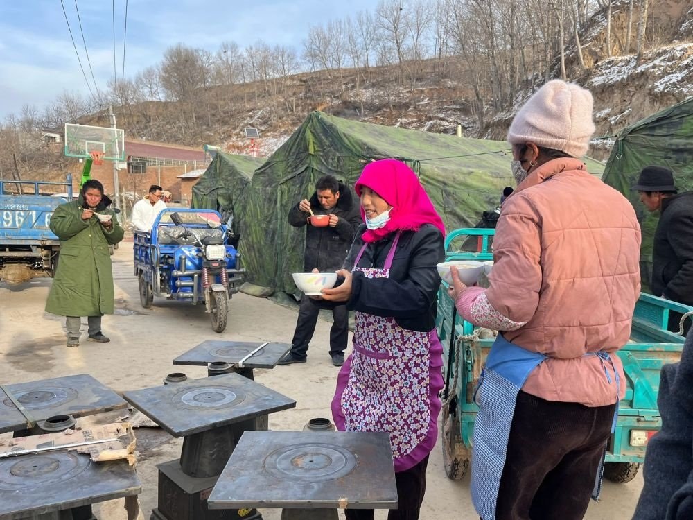 張郭家村是個小村,總共才350多人。地震發(fā)生后,全村絕大多數(shù)房屋受損,通村道路遭遇塌方,萬幸無人遇難。群眾積極自救互救,州縣鄉(xiāng)三級干部下沉,工作有序開展。19日晚至20日晨,部隊官兵徹夜為村上搭建起26頂帳篷。零下十幾度的夜晚,群眾再也不用在戶外燒柴取暖了。