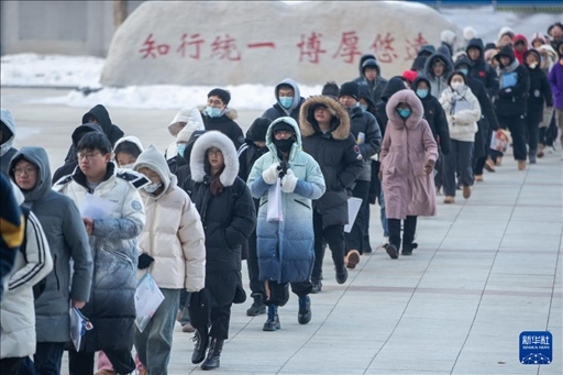 12月23日,在黑龍江省哈爾濱市,考生在哈爾濱理工大學(xué)考點(diǎn)排隊(duì)進(jìn)入考場。