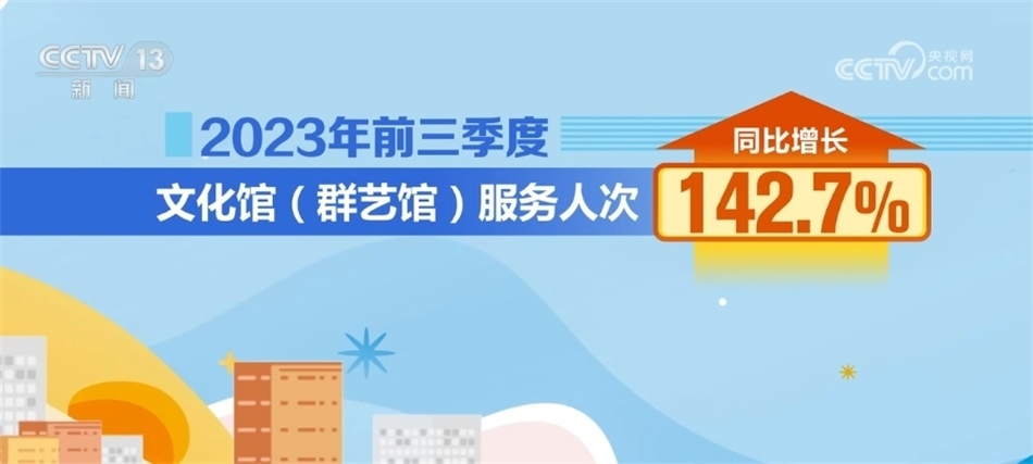 據(jù)統(tǒng)計(jì),2023年前三季度公共圖書館總流通人次同比增長55.2%;2023年前三季度,全國文化館培訓(xùn)班次近38萬個(gè),同比增長50%;文化館(群藝館)服務(wù)人次同比增長142.7%。