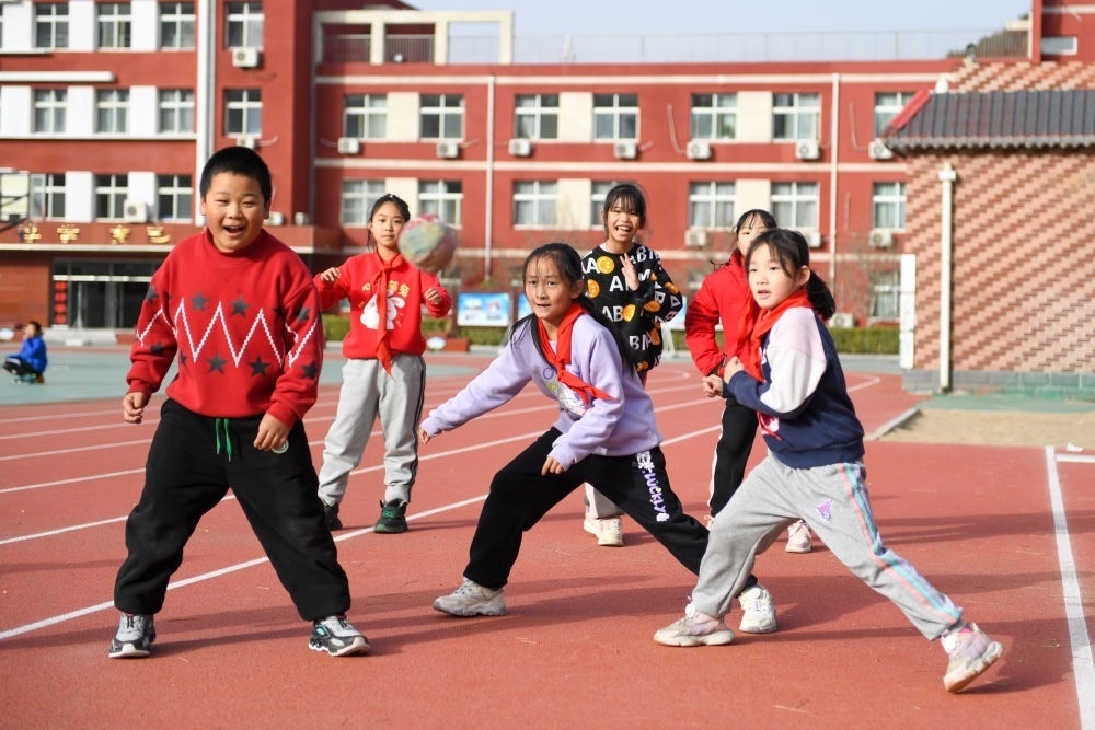 北京市門頭溝妙峰山民族學(xué)校的學(xué)生們在上體育課(12月6日攝)。新華社記者 鞠煥宗 攝