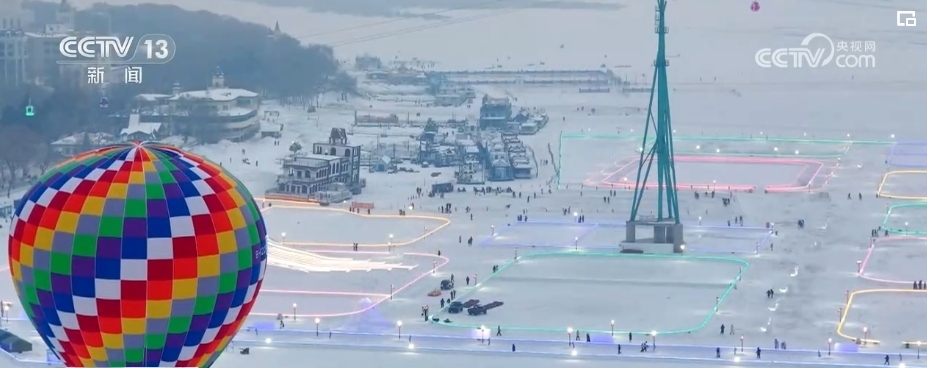哈爾濱松花江上,一個顏色鮮艷的熱氣球成為受游客追捧的熱點體驗項目。它顏色鮮艷,升空約80米,可以俯瞰冬季白雪皚皚的松花江,欣賞松花江兩岸景色。