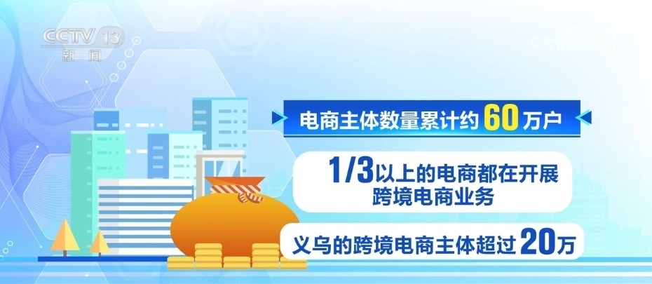 2023年,義烏的市場(chǎng)經(jīng)營(yíng)主體突破100萬戶。其中,新設(shè)電商主體17.57萬戶,同比增長(zhǎng)48.33%。電商主體數(shù)量累計(jì)約60萬戶,而三分之一以上的電商都在開展跨境業(yè)務(wù),義烏的跨境電商主體超過20萬。