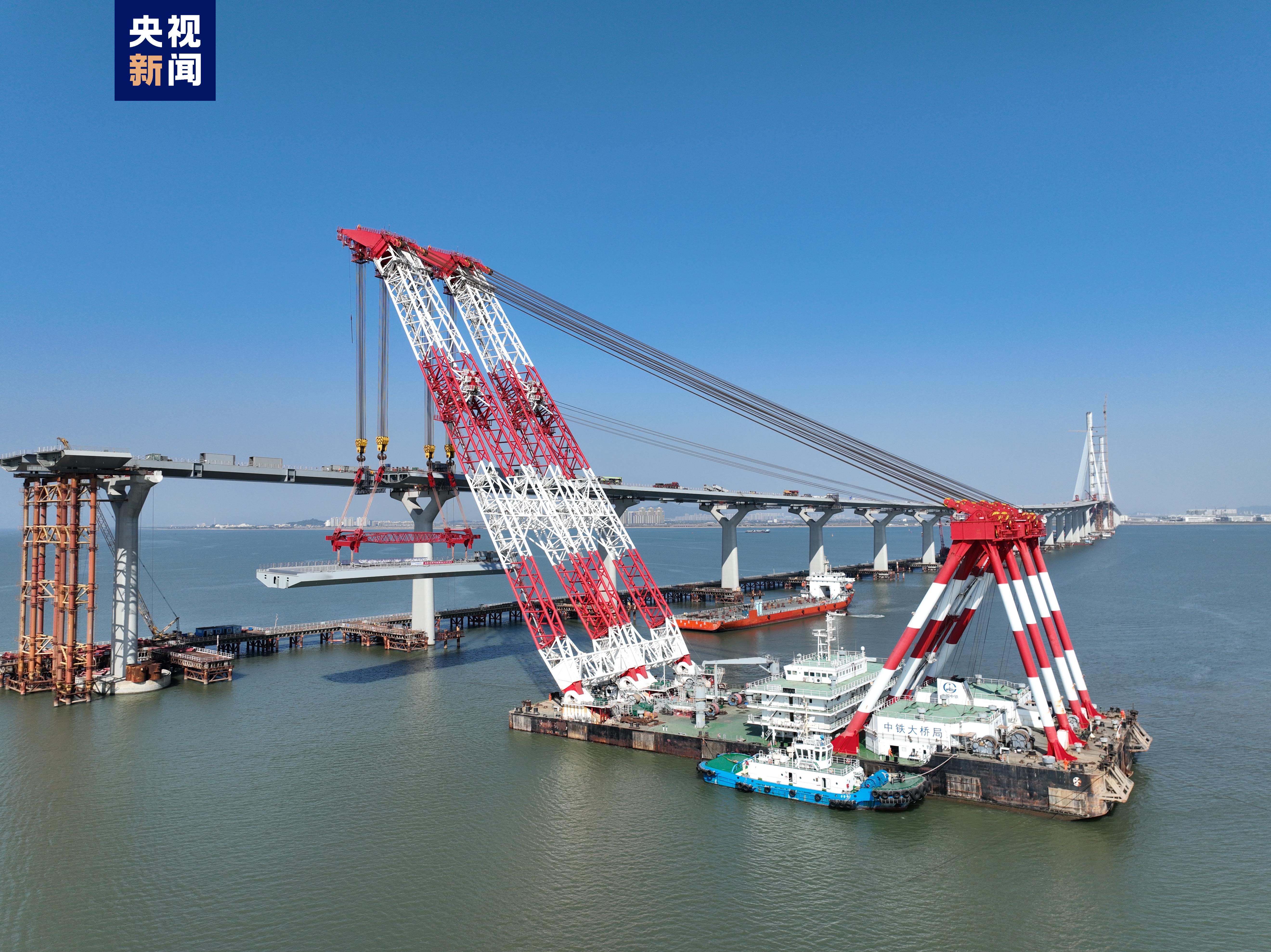 1月15日下午,隨著最后一片鋼箱梁架設(shè)到位,黃茅??绾Mǖ乐幸龢蝽樌淆垺勺I现鳂颉S茅海大橋與高欄港大橋成功完成海上“牽手”。