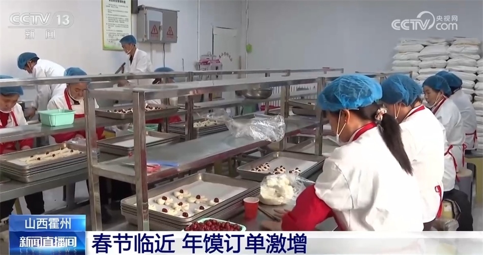 在山西霍州市的年饃加工廠里,制作年饃的師傅們異常忙碌。據(jù)了解,當(dāng)?shù)胤昴赀^節(jié)都會有做年饃、買年饃、品年饃的民俗,隨著春節(jié)臨近,工廠的年饃需求量激增?;糁菔姓限r(nóng)村集體經(jīng)濟(jì)合作社資源,吸納全市12個鄉(xiāng)鎮(zhèn)的120余家加工實體加入,趕做訂單。