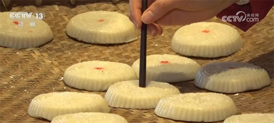 這幾天,黃山市黃山區(qū)湯口鎮(zhèn)的村民們正忙著打“食桃”。村民們將糯米和秈米碾成米粉,按比例加熱水?dāng)嚢?,再將一塊一塊球狀的米粉團(tuán)摁進(jìn)模子里敲打出來,打好的食桃放入蒸箱中,蒸二十分鐘即可出鍋。蒸熟的食桃口感綿糯,刻著各種吉祥圖案,寓意著人們對新一年的祝福和期盼。