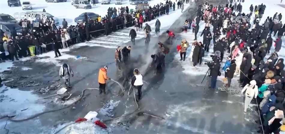 在綏化安達古大湖的冰面上,花鰱錦鯉騰躍而出,打魚郎們載歌載舞,游客們觀捕魚、拍頭魚、品鮮魚。