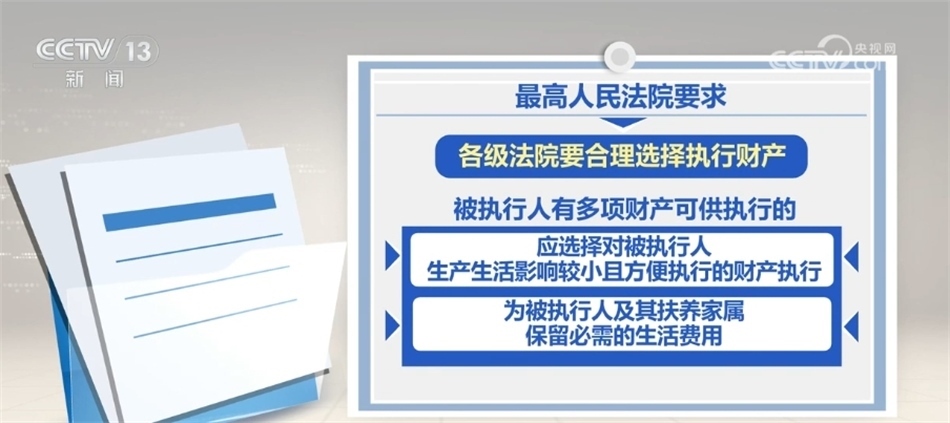 最高人民法院要求,各級法院要合理選擇執(zhí)行財(cái)產(chǎn),被執(zhí)行人有多項(xiàng)財(cái)產(chǎn)可供執(zhí)行的,應(yīng)選擇對被執(zhí)行人生產(chǎn)生活影響較小且方便執(zhí)行的財(cái)產(chǎn)執(zhí)行,同時(shí),為被執(zhí)行人及其扶養(yǎng)家屬保留必需的生活費(fèi)用。對涉及企業(yè)尤其是民營企業(yè)的,要嚴(yán)格區(qū)分企業(yè)法人財(cái)產(chǎn)與股東個(gè)人財(cái)產(chǎn),嚴(yán)禁違法查封案外人財(cái)產(chǎn),嚴(yán)禁對不得查封的財(cái)產(chǎn)采取執(zhí)行措施,堅(jiān)決杜絕超標(biāo)的查封,切實(shí)保護(hù)民營企業(yè)等企業(yè)法人、企業(yè)家和各類市場主體合法權(quán)益。