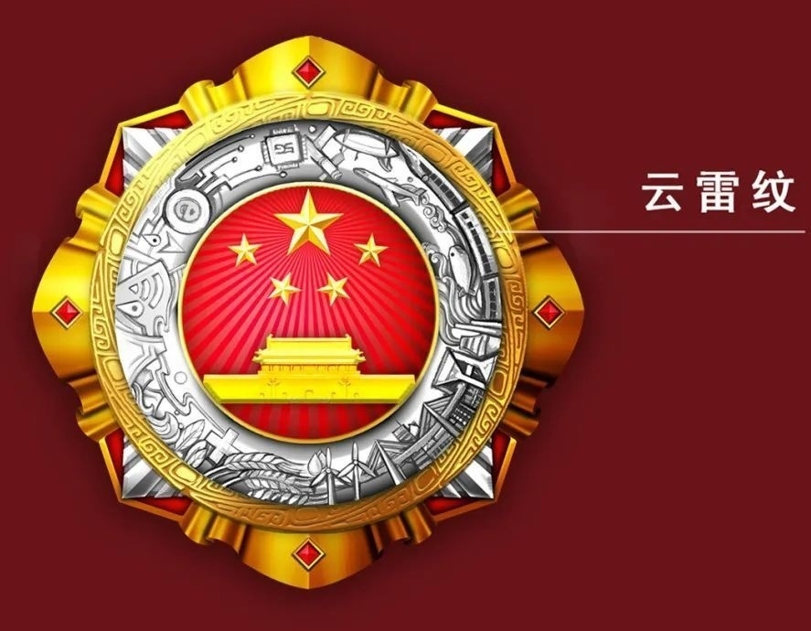 獎章章體整體是個國徽的形狀,中間則是經典的五角星與天安門元素,象征國家級榮譽。外圍的旗幟寓意獲獎者的模范引領,在黨的領導下,為實現(xiàn)理想永遠奮斗。