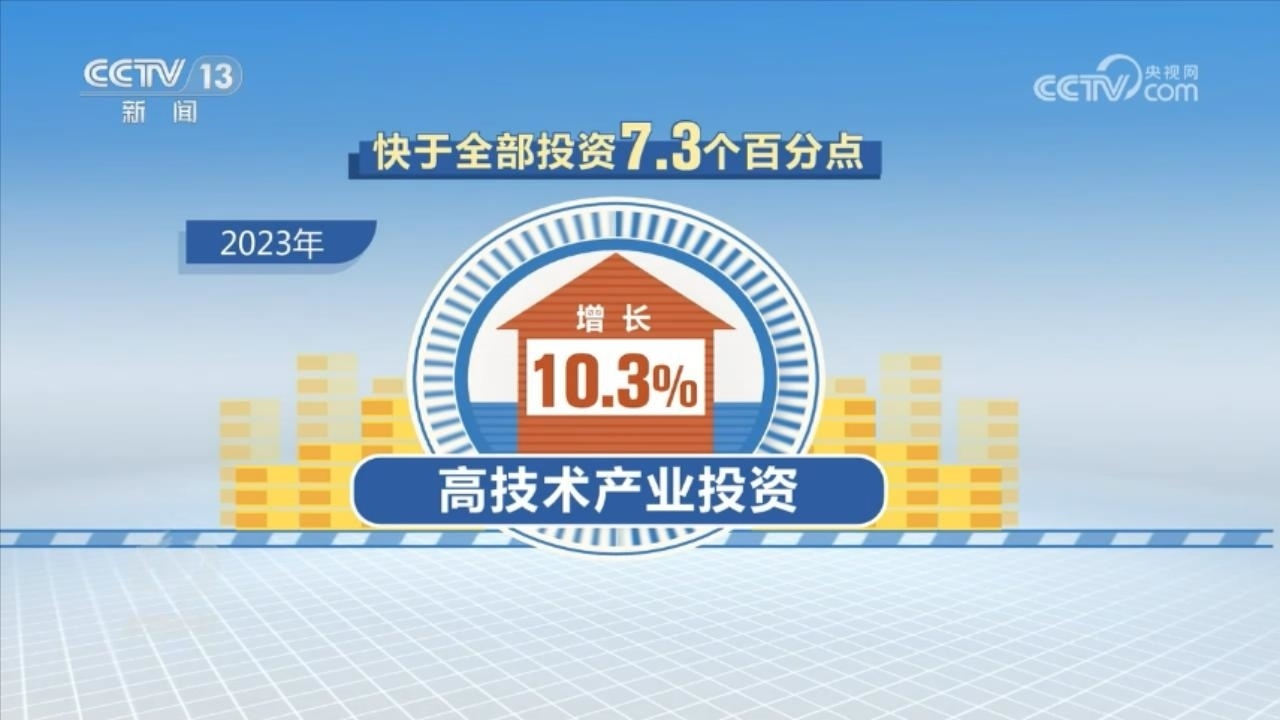 在投資領(lǐng)域,受房地產(chǎn)市場(chǎng)深度調(diào)整影響,2023年全年全國固定資產(chǎn)投資比上一年增長3%,而扣除房地產(chǎn)開發(fā)投資,民間投資增長9.2%。尤為值得注意的是,2023年高技術(shù)產(chǎn)業(yè)投資增長10.3%,快于全部投資7.3個(gè)百分點(diǎn)。其中,高技術(shù)制造業(yè)、高技術(shù)服務(wù)業(yè)投資分別增長9.9%、11.4%。