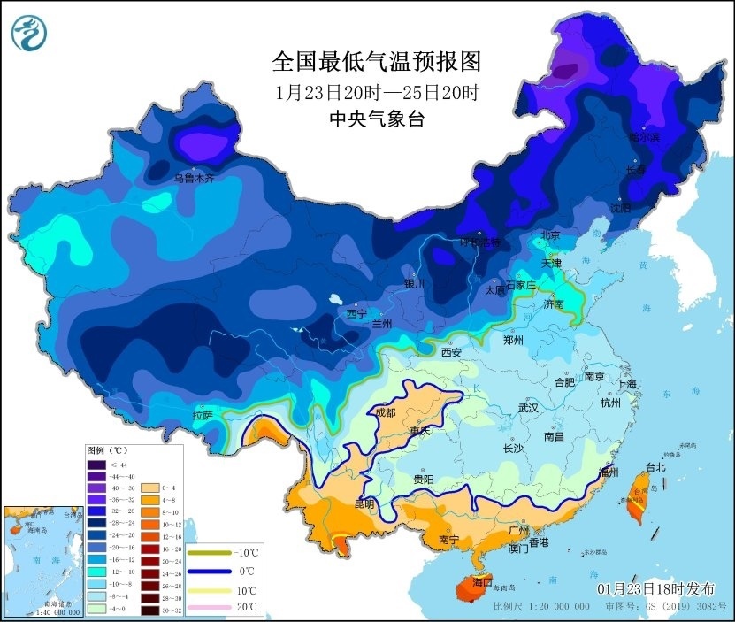 央視網(wǎng)消息:中央氣象臺1月23日18時繼續(xù)發(fā)布低溫藍色預警:預計,1月24日至25日,貴州、湖南中南部、江西中南部、浙江中南部、福建、廣東、廣西東部等地最低氣溫或平均氣溫較歷史同期偏低5℃以上,其中,貴州中東部、湖南中部、江西中南部、浙江南部、福建西部、廣東西南部、廣西東南部等地的部分地區(qū)偏低7℃以上,最低氣溫0℃線位于廣西北部、廣東北部一帶 。