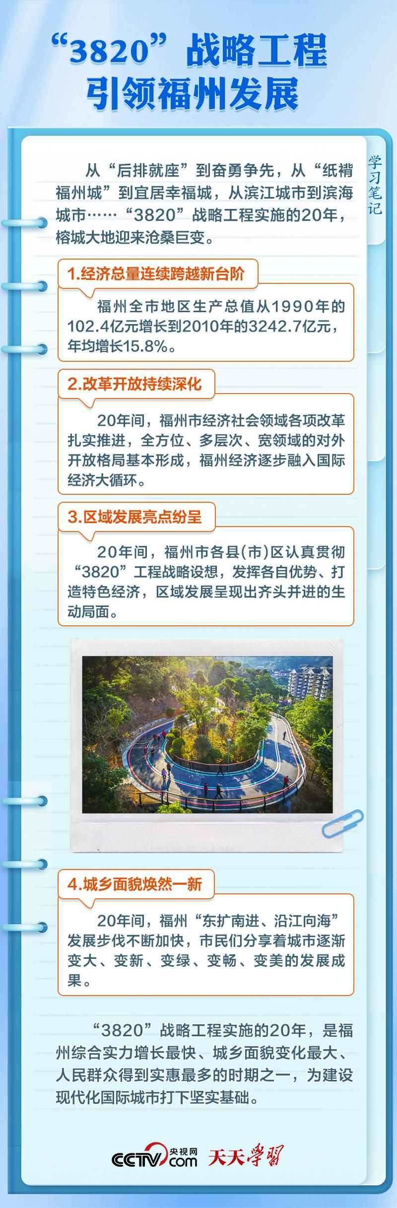 上世紀90年代,習(xí)近平在福州工作期間,親自主持編制了《福州市20年經(jīng)濟社會發(fā)展戰(zhàn)略設(shè)想》(簡稱“3820”戰(zhàn)略工程),系統(tǒng)謀劃了福州3年、8年、20年經(jīng)濟社會發(fā)展的目標、步驟、布局、重點等,為福州擘畫了美好藍圖,確立了總綱領(lǐng)、總方略。