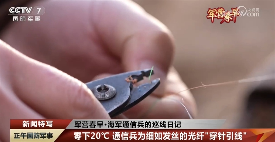 海軍某總站 鄭乾:因為光纖是玻璃材質(zhì)的,冬天特別寒冷,就會導致光纖特別容易斷裂,特別是在光纖切割刀切割光纖的時候,一不小心就會砸斷,有可能出現(xiàn)強行熔接的情況,一旦出現(xiàn)這種情況,任務就(可能)因為(數(shù)據(jù))無法使用,任務就會無法開展、失敗了。