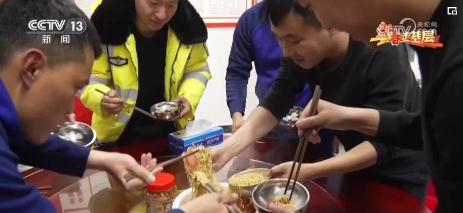 將失聯(lián)人員和車輛引導(dǎo)至國道后,大家驅(qū)車返回了救援站。從中午12時出發(fā),到晚上12時返回,12個小時的救援工作結(jié)束后,一碗熱騰騰的泡面是他們今天吃上的第一口熱乎飯。