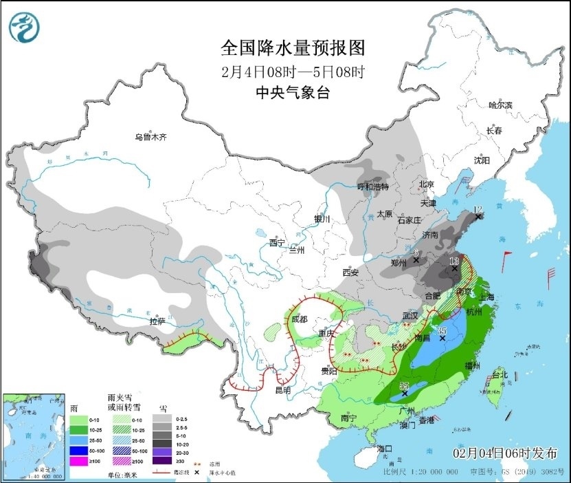 預(yù)計今天,華北、黃淮、江淮北部、江漢等地將有降雪;凍雨落區(qū)與前期變化不大,貴州中東部、湖南大部、湖北東南部、江西西北部、安徽南部等地還需繼續(xù)做好防御凍雨的相關(guān)措施,及時除冰融冰,保障交通運(yùn)輸及電力安全。