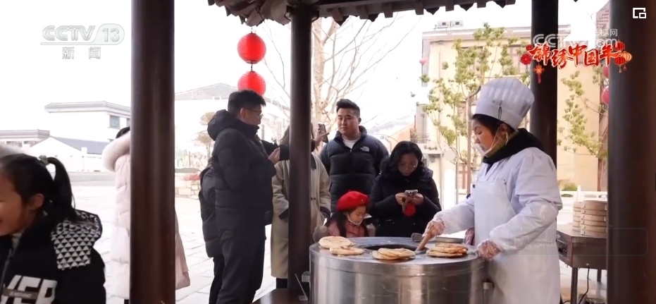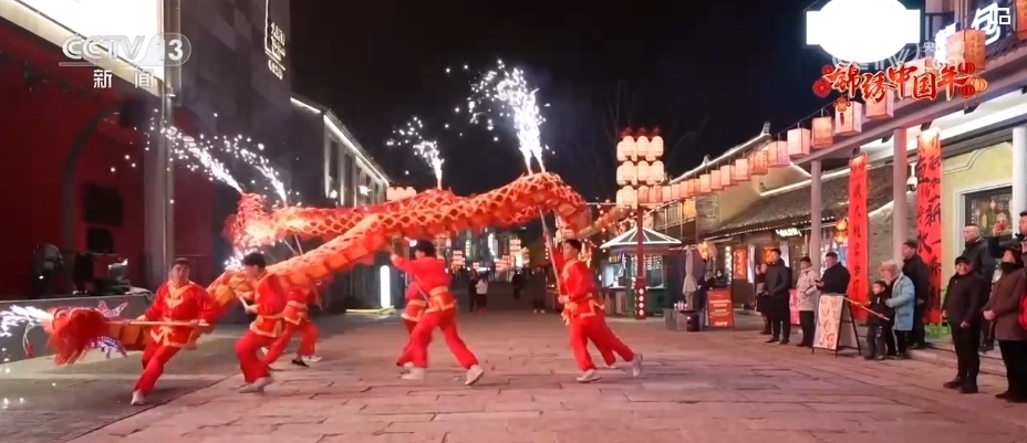 老式燒餅色澤金黃、香酥可口、風(fēng)味獨特,裹滿糖衣的糖葫蘆一口一個香甜美味,還有非遺美食合成昌的糖麻花,傳統(tǒng)美食琳瑯滿目,年味兒十足,吸引了不少市民游客進(jìn)店品嘗購買。剛?cè)胍?,龍燈點亮珠溪古鎮(zhèn),光影畫卷流光溢彩,煙花舞龍震撼登場,情景劇精彩上演。