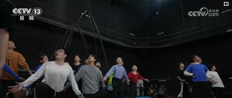 由于場(chǎng)地限制,空中飛人部分只能在河南濮陽(yáng)進(jìn)行訓(xùn)練,而浪橋和蹦床的演員們則早早來(lái)到了北京。浪橋就像兩個(gè)大幅度擺動(dòng)的秋千,演員需要就在雙浪橋間以?huà)伣蛹愚D(zhuǎn)體的方式實(shí)現(xiàn)人員轉(zhuǎn)換。