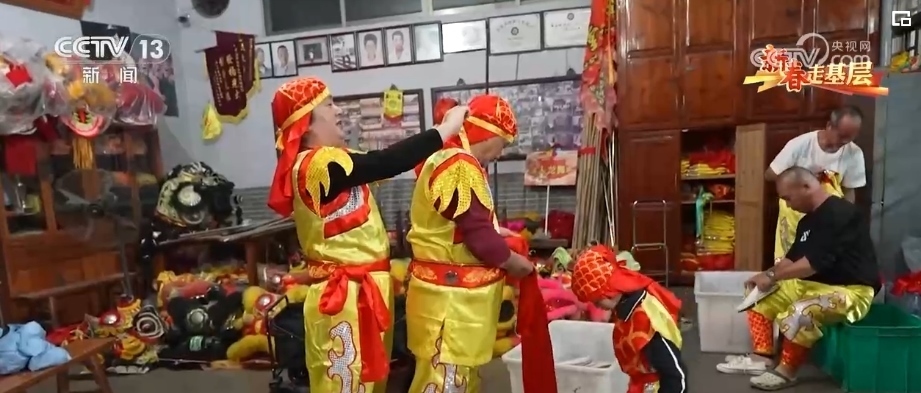隨著年歲漸長(zhǎng),林康發(fā)如今從父親的手中接棒,成為隊(duì)伍的中堅(jiān)力量。他所負(fù)責(zé)的“龍頭”位置表演難度極高,不僅身前要抱著一個(gè)扮”龍舌”的小朋友,肩上還要扛著手拿”龍角”的女兒。