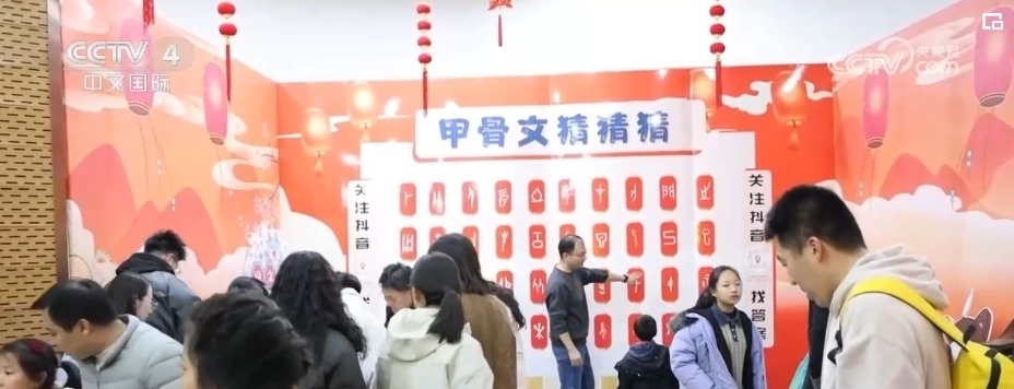 博物館內(nèi)的漢字展、漢服秀、甲骨文韻律操、文創(chuàng)集市等豐富多彩的節(jié)目,也給游客帶來了不一樣的新春體驗和感受。識讀甲骨文,能讓大家對漢字演變過程有更加直觀的認識和了解,在“甲骨文猜猜猜”游戲中,游客們認真觀察、思考展板上一個個甲骨文所對應(yīng)的漢字,感受著古人的智慧和漢字的靈性與博大。