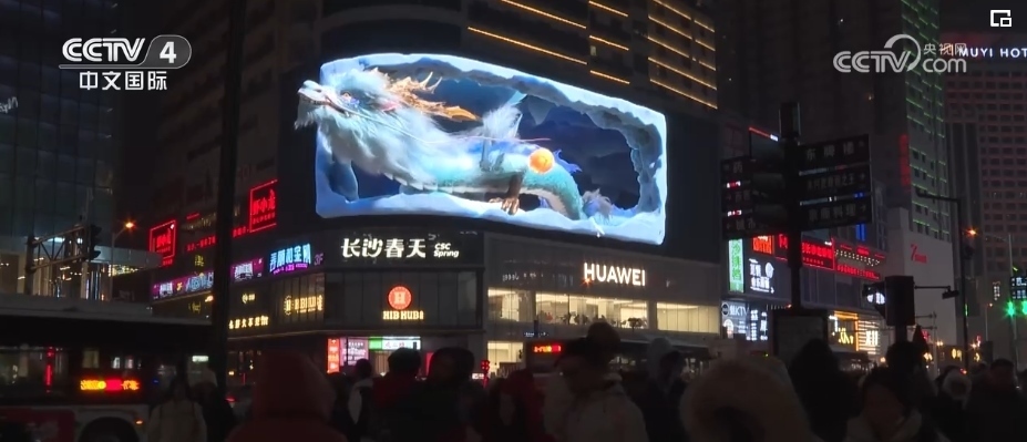 隨著夜幕降臨,在上海市南京西路這家商場戶外大屏,在裸眼3D技術(shù)的加持下,一條靈動時尚的“光影巨龍”騰飛而出。同時,上海南京西路商圈的多個地標建筑,也開啟了春節(jié)燈光演繹。