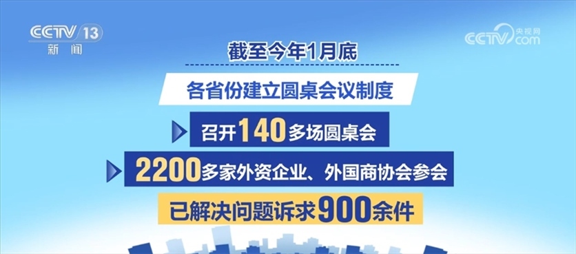 自2023年7月起,商務部建立外資企業(yè)圓桌會議制度,定期召開會議聽取外資企業(yè)反映困難問題和意見建議,并會同相關部門和地方共同推動解決。截至今年1月底,商務部已召開16場外資企業(yè)圓桌會,共400多家外資企業(yè)、外國商協(xié)會參會,已解決會上反映的問題訴求300多件。同時,各省份也建立圓桌會議制度,召開140多場圓桌會,2200多家外資企業(yè)、外國商協(xié)會參會,已解決問題訴求900余件。