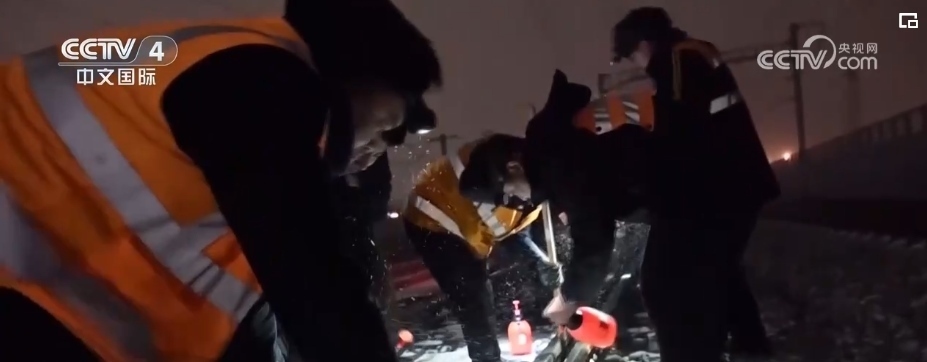山東省內(nèi)的多趟列車出現(xiàn)晚點、停運。為保障旅客出行安全,山東各大火車站工作人員對進站口、站臺、道岔等開展清冰除雪作業(yè)。