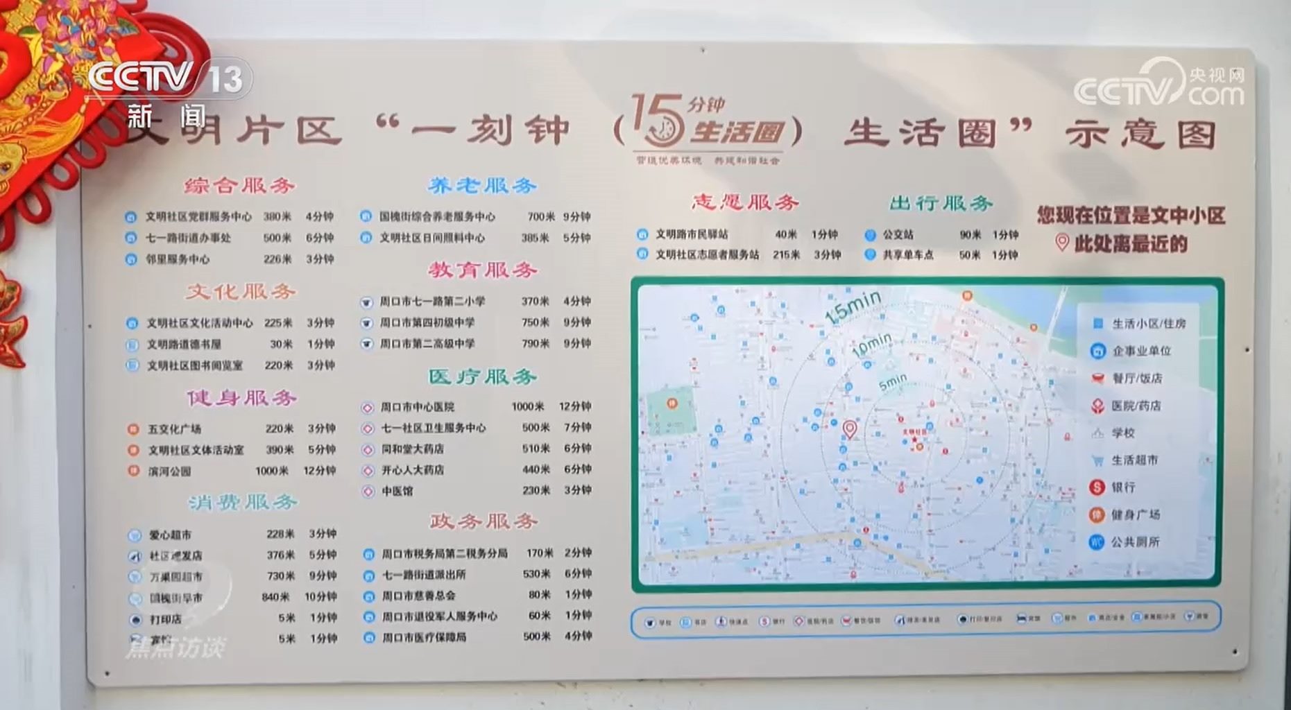 央視網消息(焦點訪談):走出家門,在步行一刻鐘的范圍內可以做些什么?河南周口市川匯區(qū)文明片區(qū)的15分鐘生活圈地圖上可以看到百姓基本生活所需幾乎全部覆蓋。河南省周口市是農業(yè)大市、人口大市,長期以來,這里城市化水平比較低,城市基礎設施和公共服務設施建設歷史欠賬多。川匯區(qū)作為城市的老舊小區(qū),遺留問題尤其多。2023年,川匯區(qū)在改造老舊小區(qū)的同時,著力打造15分鐘便民生活圈。經過一系列的措施,現(xiàn)在居民的生活怎樣了呢?