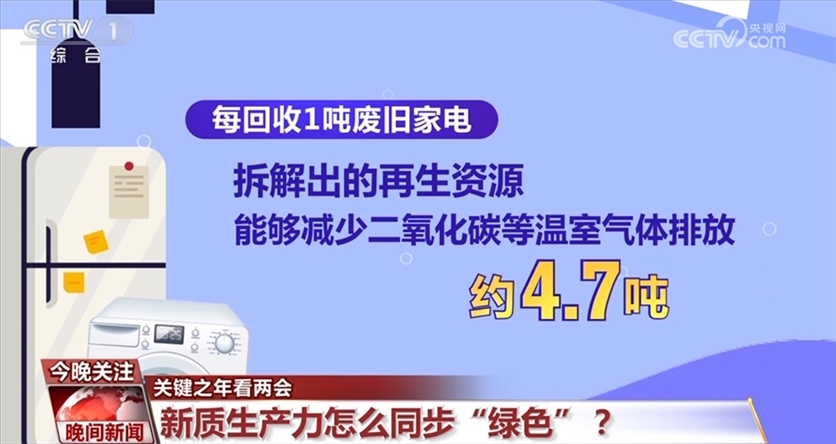數(shù)據(jù)顯示,2023年,冰箱、洗衣機(jī)、空調(diào)等主要品類家電保有量超過30億臺(tái),一些家電使用了十多年、二十年,更新?lián)Q代的需求和潛力很大。據(jù)統(tǒng)計(jì),2023年,我國(guó)廢舊家電回收總量達(dá)450萬(wàn)噸,而每回收1噸廢舊家電,拆解出的再生資源能夠減少二氧化碳等溫室氣體排放約4.7噸。
