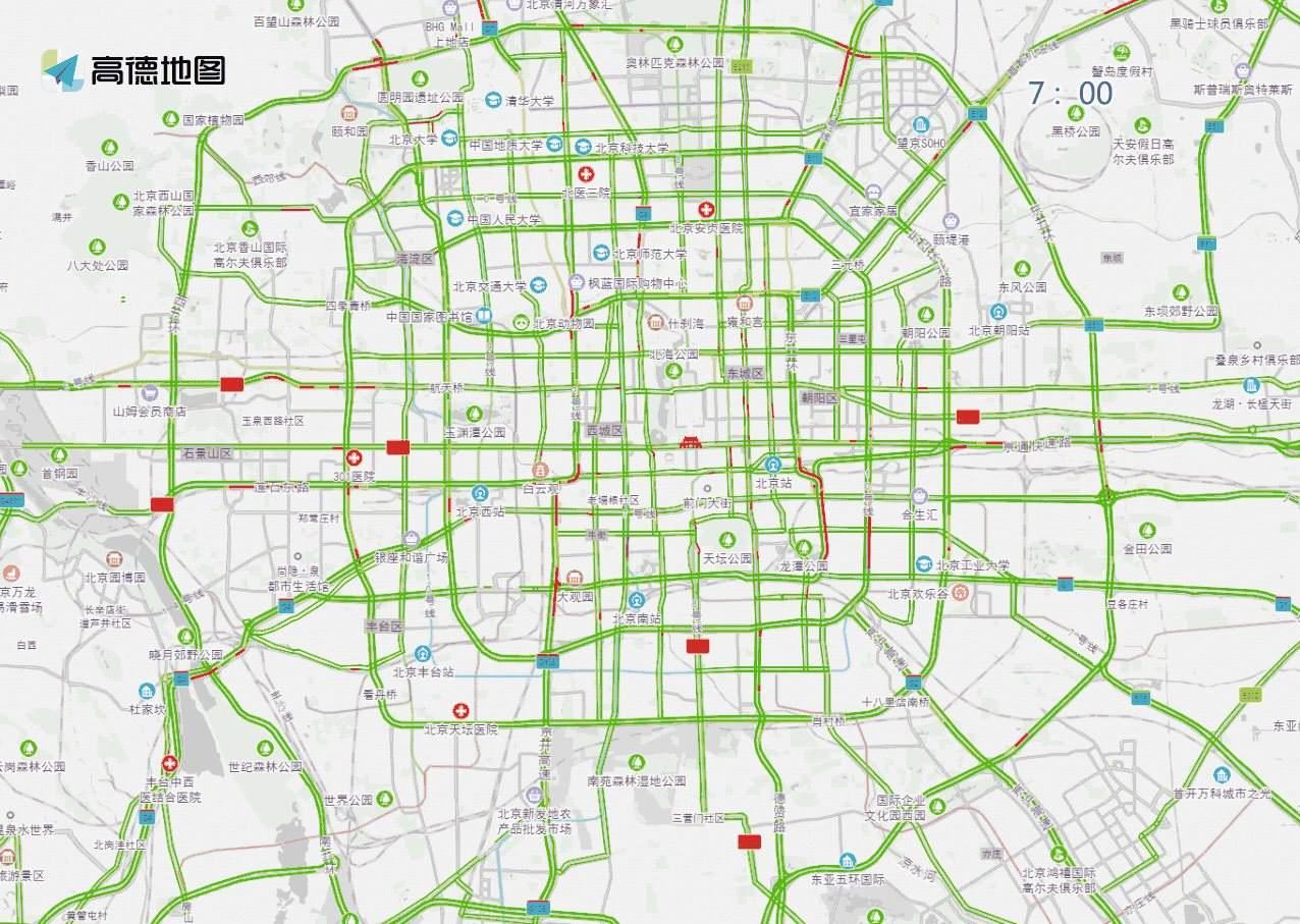 ? ? ? ?工作日白天時(shí)段,預(yù)計(jì)兒童醫(yī)院、兒研所、北京醫(yī)院、西苑醫(yī)院、復(fù)興醫(yī)院、北醫(yī)三院、同仁醫(yī)院、積水潭醫(yī)院等醫(yī)院門前及周邊道路車流量較大,高峰時(shí)段為7至13時(shí)。