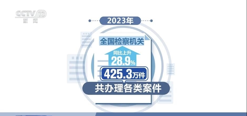 2023年,全國檢察機關(guān)共辦理各類案件425.3萬件,同比上升28.9%。