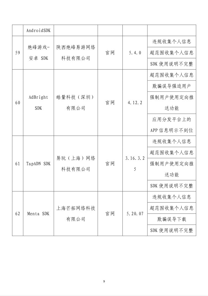 央視網(wǎng)消息:據(jù)工業(yè)和信息化部網(wǎng)站消息,工業(yè)和信息化部信息通信管理局3月14日公布《關(guān)于侵害用戶權(quán)益行為的APP(SDK)通報(bào)(2024年第2批,總第37批)》: