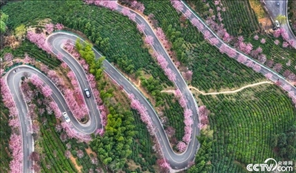 陜西省安康市平利縣長安鎮(zhèn)通往洪福茶山的 “之”字型道路兩旁春梅盛開,美不勝收。