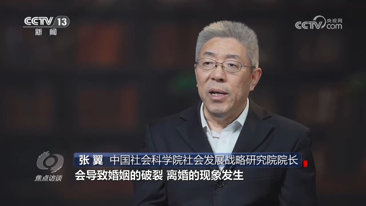 中國社科院社會發(fā)展戰(zhàn)略研究院院長張翼:“增加夫妻雙方的矛盾以后,會導致婚姻破裂、離婚現(xiàn)象發(fā)生,導致離婚率居高不下;第二,往往導致兩個親家之間互不往來,原來存在的家庭網斷裂了?!?