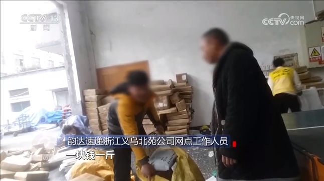 那么,涉事公司的快遞網(wǎng)點到底存不存在這種情況呢?記者進行了實地探訪。在快遞網(wǎng)點的退件區(qū),現(xiàn)場有穿著“北苑韻達”字樣服裝的工作人員正在作業(yè)。工作人員告訴記者,退件用車?yán)撸辉X一斤賣掉。