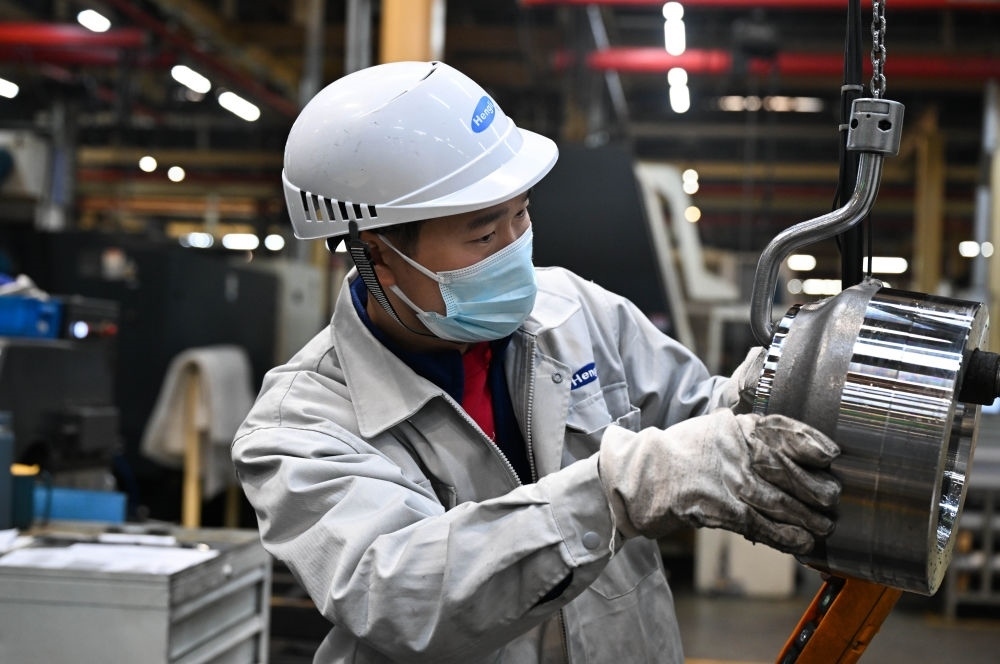 在位于常州市武進(jìn)區(qū)的江蘇恒立液壓股份有限公司,工人在車間忙碌(2023年12月22日攝)。新華社記者 季春鵬 攝