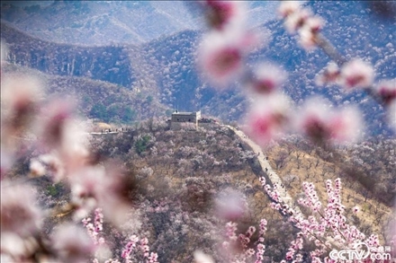 北京長城內(nèi)外山花爛漫。