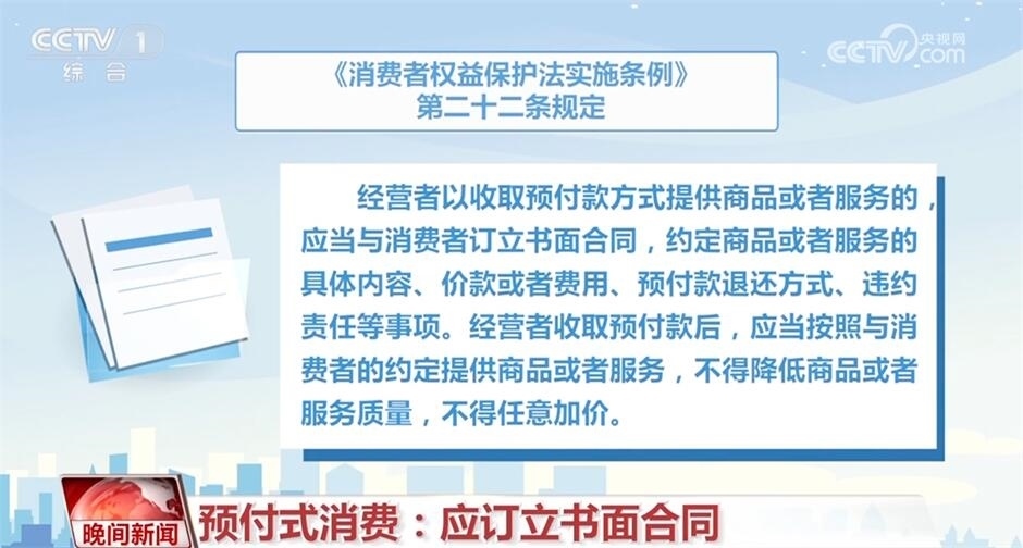 《消費者權益保護法實施條例》第二十二條規(guī)定,經(jīng)營者以收取預付款方式提供商品或者服務的,應當與消費者訂立書面合同,約定商品或者服務的具體內容、價款或者費用、預付款退還方式、違約責任等事項。經(jīng)營者收取預付款后,應當按照與消費者的約定,提供商品或者服務,不得降低商品或者服務質量,不得任意加價。