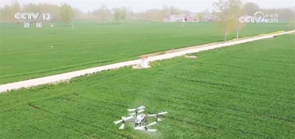 王志國表示,目前,小麥病蟲害90%以上用植保無人機來防治,一臺植保無人機一天可防治1000畝地,能頂替100個勞動力,而且不重噴、不漏噴,非常精準(zhǔn)。