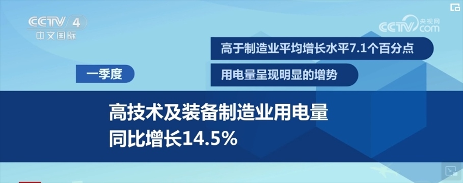 從行業(yè)看,一季度,高技術(shù)及裝備制造業(yè)用電量同比增長14.5%,高于制造業(yè)平均增長水平7.1個百分點(diǎn),用電量呈現(xiàn)明顯的增勢。