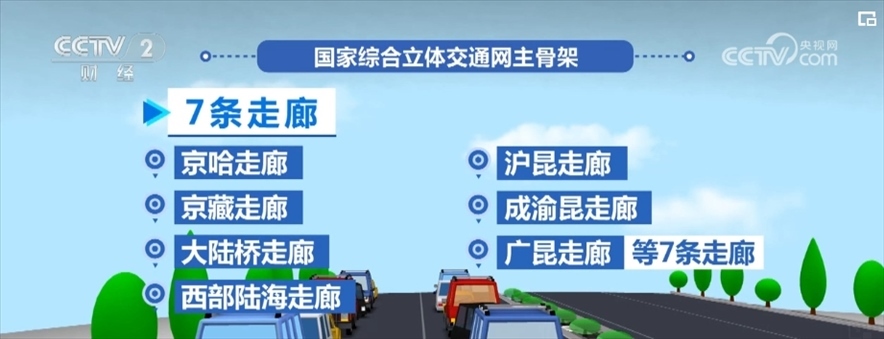 國家綜合立體交通網(wǎng)主骨架可以概括為“6軸、7廊、8通道”,即6條主軸、7條走廊、8條通道。