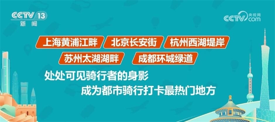 從具體城市來(lái)看,上海、北京、杭州、蘇州、成都成為軌跡數(shù)量排名前五的城市,在上海黃浦江畔、北京長(zhǎng)安街、杭州西湖堤岸、蘇州太湖湖畔、成都環(huán)城綠道處處可見騎行者的身影,這些江河湖畔、城市綠道成為了都市騎行打卡最熱門的地方。