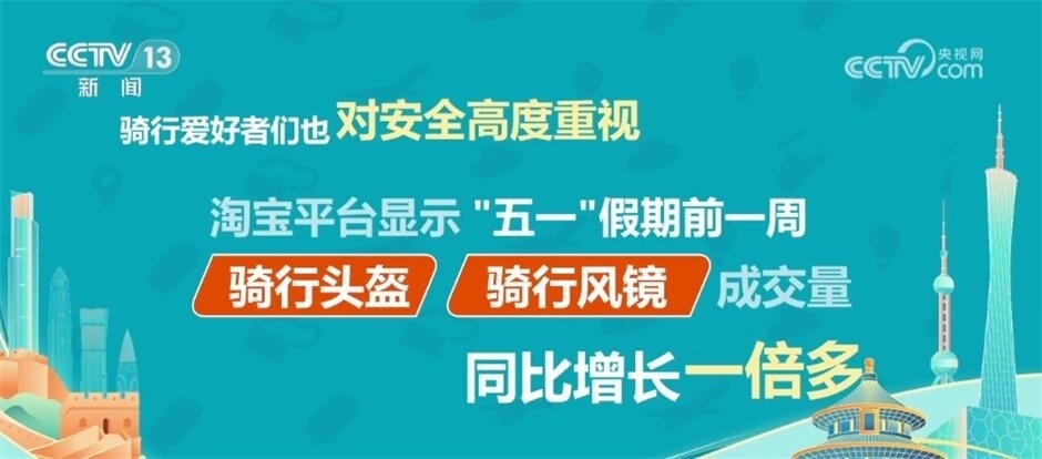 京東數(shù)據(jù)顯示,“五一”前半個(gè)月,公路自行車和電助力自行車銷售額的增幅最大,同比增長(zhǎng)了兩倍多。騎行服、騎行穿戴裝備、自行車配件的銷售也同比增加一倍多。騎行愛好者們也對(duì)安全高度重視,淘寶平臺(tái)顯示,“五一”假期前一周,騎行頭盔和騎行風(fēng)鏡的成交量也同比增長(zhǎng)一倍多。