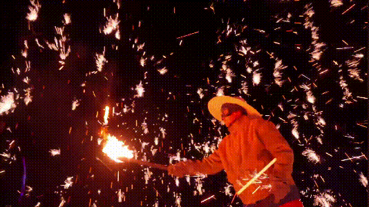 “長(zhǎng)城鐵花”是長(zhǎng)城腳下的人們?cè)谵r(nóng)閑時(shí)表演來(lái)祭祀、娛樂(lè)、祈求風(fēng)調(diào)雨順、生活美滿的一種民間文藝活動(dòng)。當(dāng)鐵水溫度達(dá)到1600至1800攝氏度時(shí),用木勺擊打鐵水,鐵花四濺,猶如天女散花,甚是絢麗壯觀。