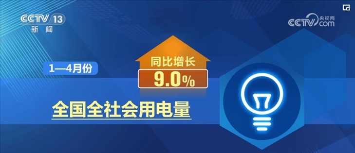 1至4月全社會用電量同比增長9.0%