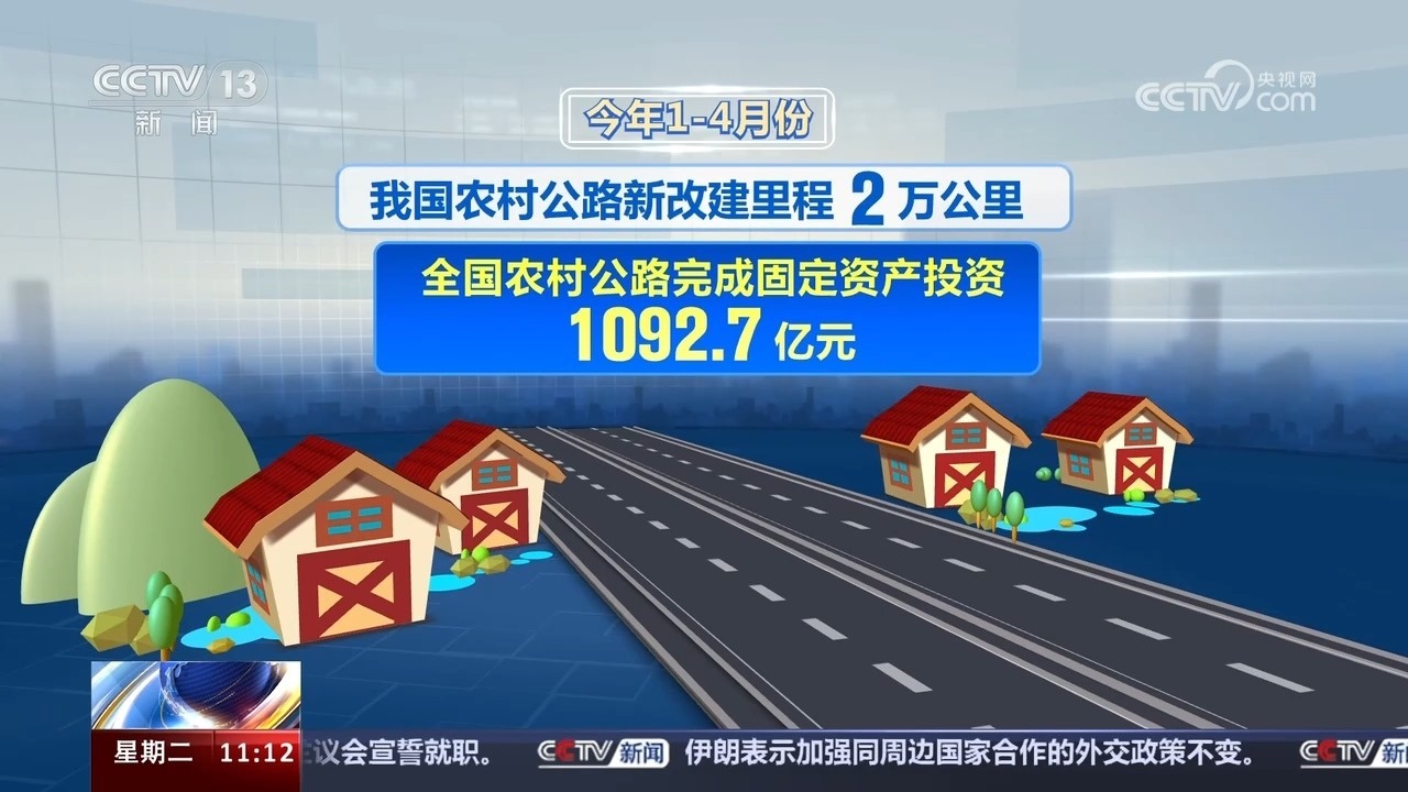 今年1—4月份,我國農(nóng)村公路新改建里程2萬公里,全國農(nóng)村公路完成固定資產(chǎn)投資1092.7億元。